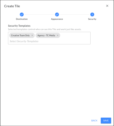 - Security Templates: Security Templates that will be applied to the assets uploaded via the asset preset. Multiple Security Templates can be applied to a single Asset Preset.