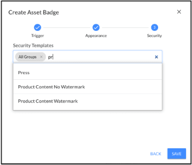 - Security Template: Security Templates that will be applied to the assets uploaded via the asset preset. Multiple Security Templates can be applied to a single Asset Preset.
