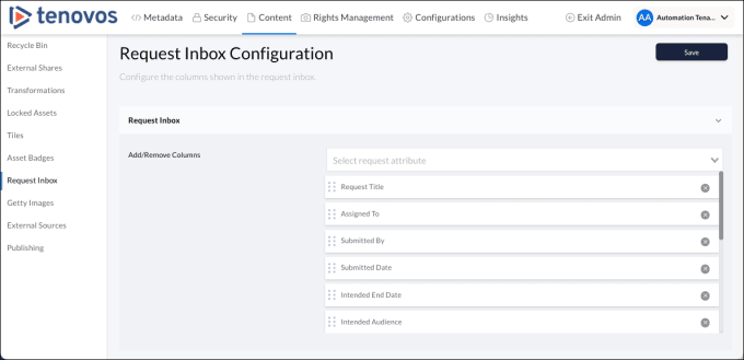 - Request Inbox. Configure the columns displayed in the Request inbox.