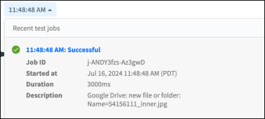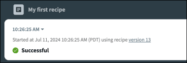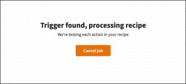When a recipe is started, it is considered active. Active recipes will detect all new trigger events and will process each event as a job. Once a recipe is started, all processed jobs are logged in the recipe’s job history where job details are available for your review.