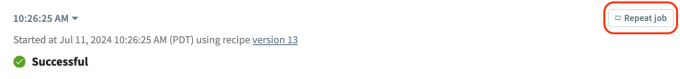 NOTE: If the job was successful, there is no need to repeat the job. Repeating a job is most often used following fixing an issue with the recipe, optimizing a recipe or making enhancements to a recipe when initiating a new trigger event is not required.