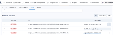NOTE: To resend a single message, go to Admin > Webhooks > Logs.