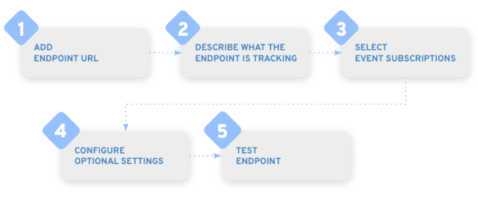 Adding an endpoint is easy! Just provide a URL that you control and select the event types that you want to receive notifications about.