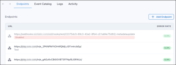 To view a list of all defined endpoints, navigate to Admin > Webhooks > Endpoints.