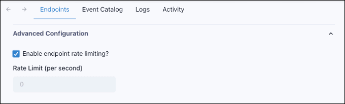 (Optional.) The Advanced Configuration section allows you to Enable endpoint rate limiting and then enter a Rate Limit (per second).