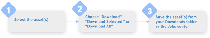 When downloading assets from the Cart, you can Download a single asset, Download Selected or Download All: