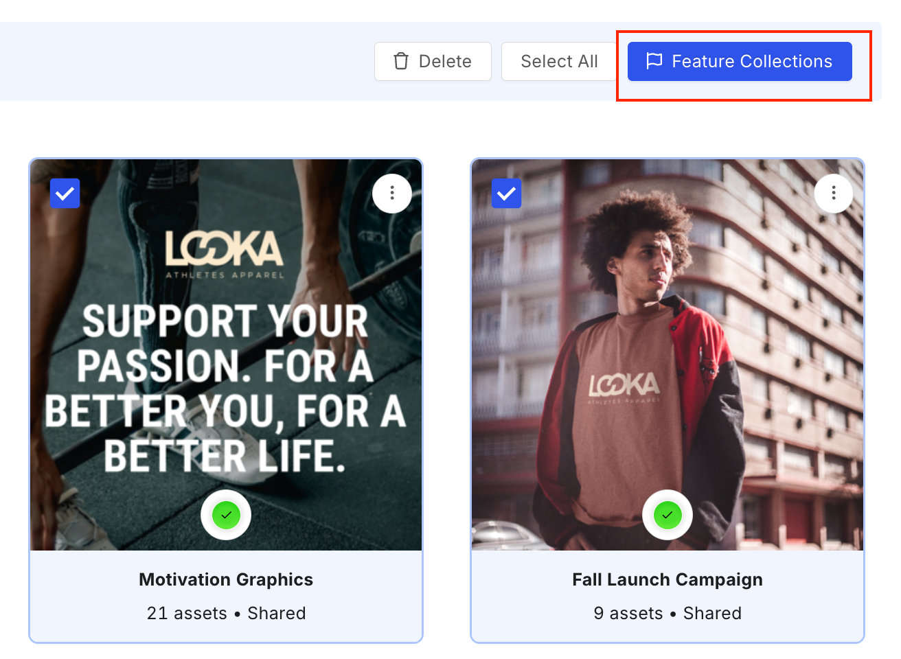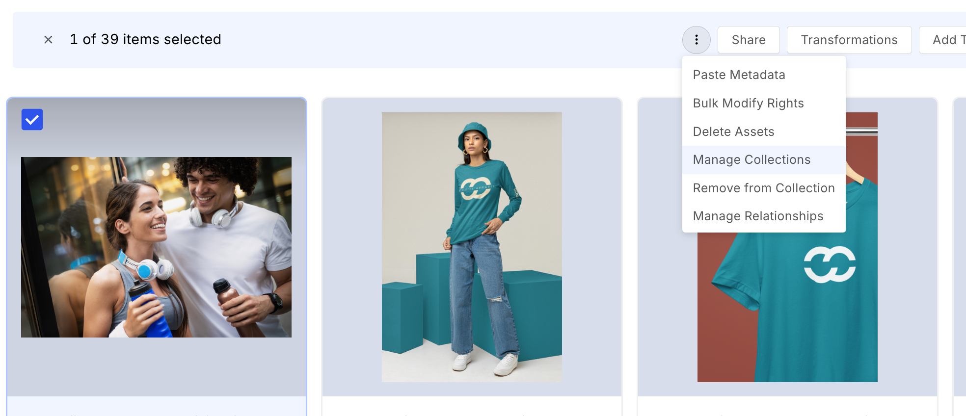 - In the Collections page, open the collection and select the assets to remove.