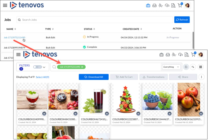 - Click the job Name to view all assets in the metadata bulk edit request.
