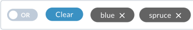 To apply a boolean OR to the filters you select, click the filter category’s AND/OR toggle. With OR applied, the search results are filtered to include all assets with at least one of the selected attributes in a filter category.