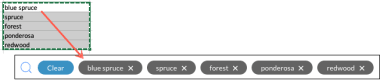 **blue**(tab)**spruce**(tab)**redwood**(tab)**forest**into the Search Assets bar. The tabs are converted to commas.