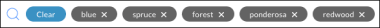Entering blue spruce forest in the Search Assets bar will split each word into its own search pill.