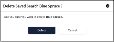 In the Actions column, click Delete search. The Delete Saved Search dialog appears.