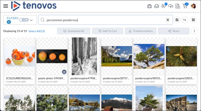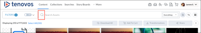 You can search Tenovos to find the exact assets you need. Searches allow you to locate assets based on keywords that you provide. Filters allow you to locate assets based on specific metadata. To further refine your search results, you can combine searches and filters.