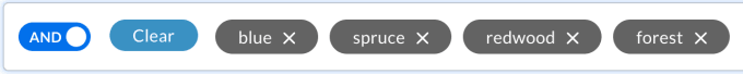 AND. Searches for all terms. For example, the following is a search for assets that include the search criteria of “blue” AND “spruce”.