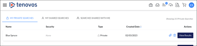 Saved searches allow you to save and access search parameters for quick and easy re-use.